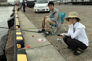 釧路港内でサケ釣りに挑戦。まったくあたりもなく終了。
