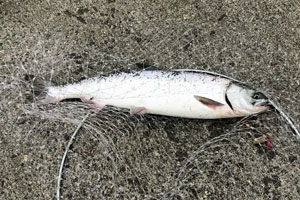 お隣で釣れてたサケ |