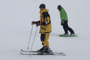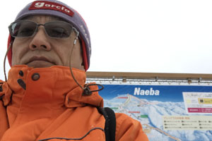 雪がチラつくがまずまずのコンディション。久々に、朝から一日中滑ったかな?。