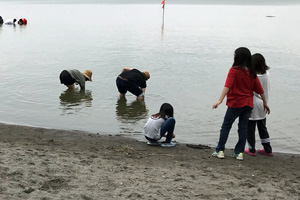 網走湖でしじみ採りの看板