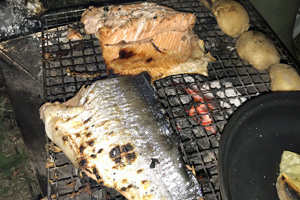 夕食はカラフトマスの塩焼き
