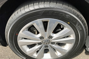 購入したお店(YH)で見てもらったが異常はないとのこと。タイヤ外してホイルバランスを取り直してくれたが、10〜15gずつ再調整必要だったが、バランス起因でも無さそう。VWのディーラーに行ってみてもらったところ、タイヤが原因と即断された。やはり1本1万円のタイヤはケチりすぎたのかも。