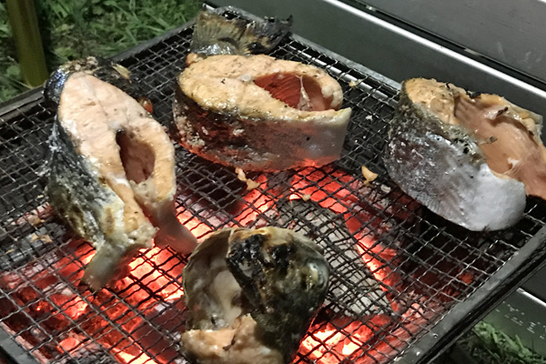 夜はカラフトマス塩焼き