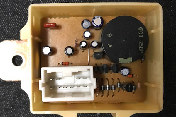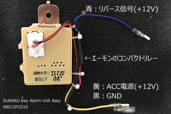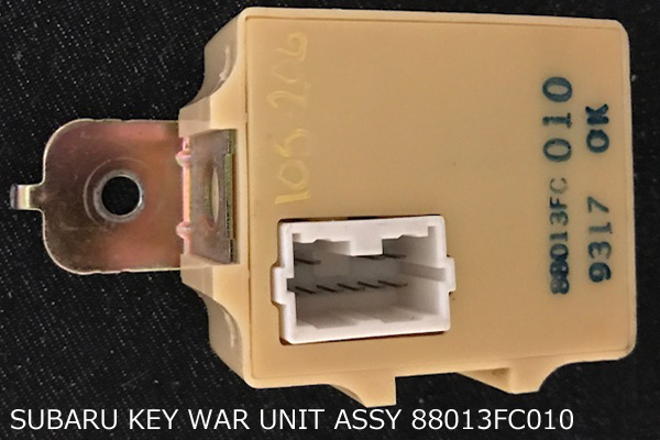 前車のGolf7のリバースチャイム(バック音)には、PanasonicのEB2122を使用していた。 コスト最優先の選択だったが、音が安っぽいのと、このブザーユニットは極めてシェアが高いので、様々な場面で同じ音を聞いてしまうのが欠点。以前、スバルレガシーに乘っていた時のキーウォーニング(キーさしたままドア開けた時)に使われていたポーンポーンという音が欲しくなり、ネットで中古部品を物色。運よく、2000年前後にフォレスターに使用されていた中古ユニットを見つけてゲットした。880130FC010というユニット。ネット情報をあさると、このシリーズには末尾が000、010、020と3種類のユニットがあるようだが、アラーム音はたぶん皆同じポーンポーンというやつと推定。020だと、キーイルミネーションの残光処理機能などが付加されているようだが、リバースチャイム用(バック音)に音だけならすのでどれでもOKだと理解した。(間違ってたらごめんなさい)