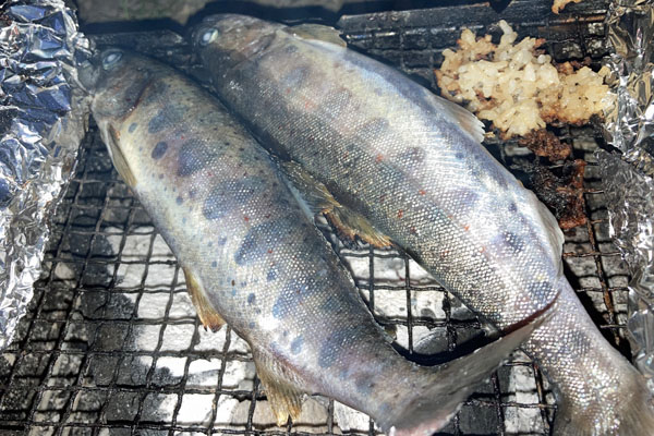 窪川の水車亭で芋けんぴ。十和、鯉のぼり公園。アマゴ販売所でアマゴ調達。窪川のスーパーで、買い出し。窪川の道の駅で昼食。シイラバーガー。松葉川温泉へ。ところがなんと、松葉川温泉がお休みでした。急遽、源流の里へ。一番風呂で、誰もいなくて借し切りです。