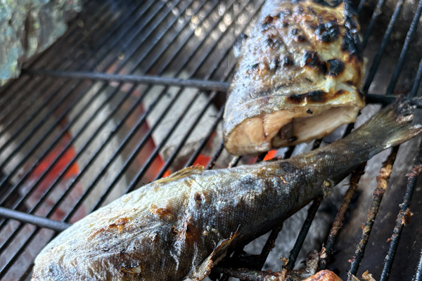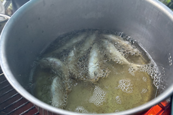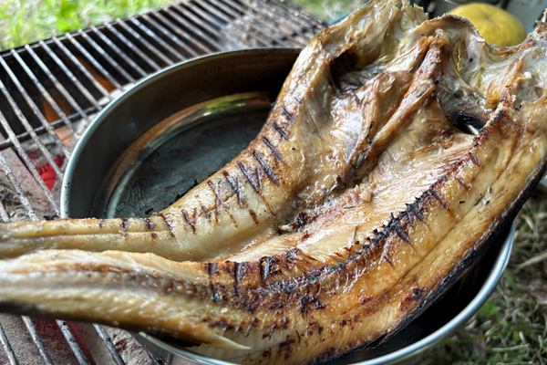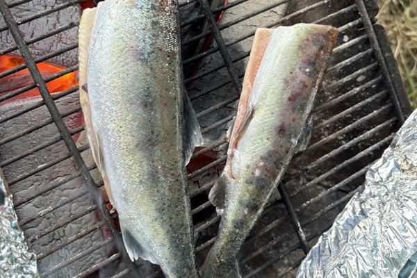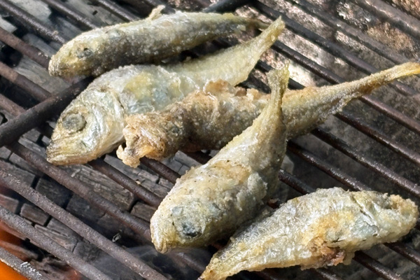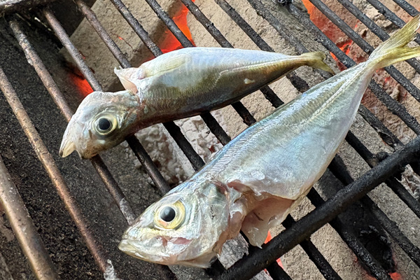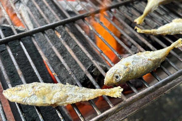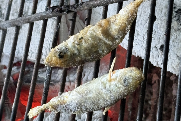 アメゴを炭火で塩焼き