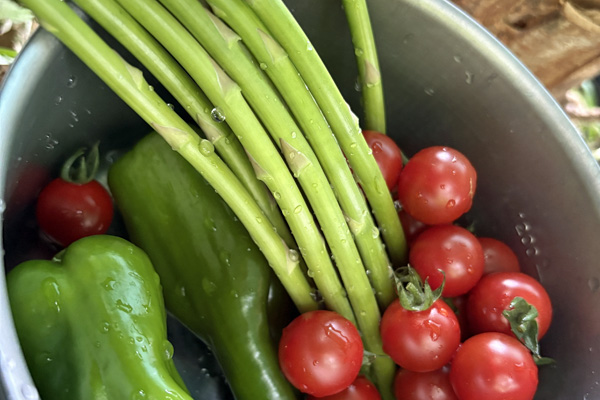 アスパラ、ピーマン、トマト