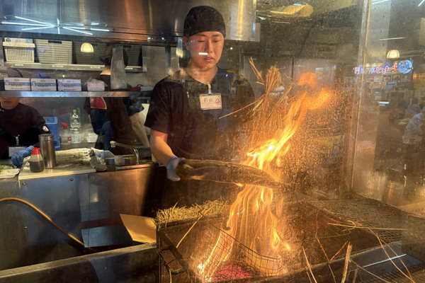 明神丸の藁焼き