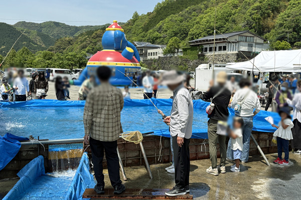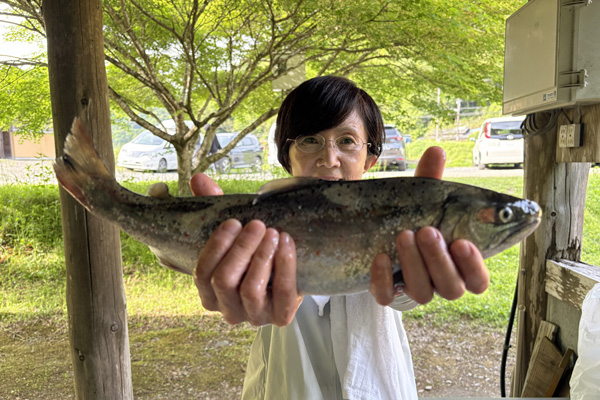 十和こいのぼり公園で、よってこい四万十のイベントに参加。あめご釣り大漁!9匹、最大34cm。