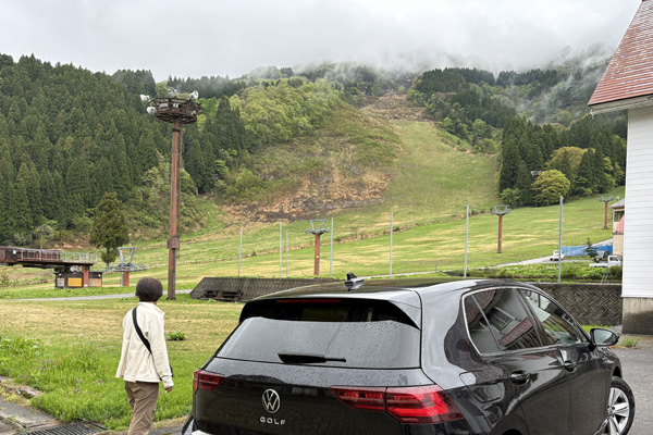 山には残雪。温泉の隣には2008年シーズンから休業中の中宮温泉スキー場。復活しないかなー。