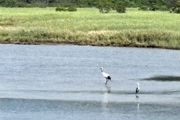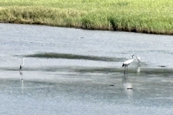 ポロト沼に丹頂鶴とさぎ