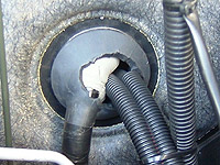 付属してきた極太コード(20sq×2本)を通すために、メイン配線用のグロメットをカッターで切り裂いて、無理やり力任せに引き出した。