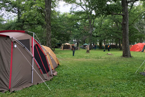サイトは、草地で、サイトの周りに多少木が生えているので、夏の暑いときは木影を選ぶことが可能。