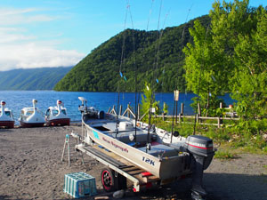 レジャー用のべダルボート、手漕ぎボート、ヒメマス釣り用のボートなども借りられる。