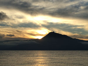 対面に夕陽が沈む |