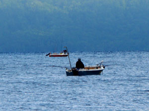 キャンプ場の目の前ではヒメマス釣り |