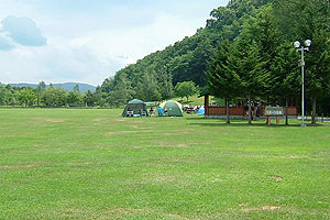 芝生 のフリーサイト。オートキャンプは不可だが、問題なし。 |
