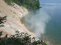 半島先端部では、火山活動の噴気(→)が見えたり、なかなかいい。