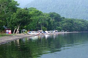 屈斜路湖の和琴半島には、二つのキャンプ場があり、こちらは湖畔にあって、直接湖水に面している方のキャンプ場。もうひとつの和琴半島キャンプ場は、すぐそばに隣接しているが、こちらは湖岸に接しておらず、森の中のキャンプ場という感じ。近いのだが、全然雰囲気が違うことろが面白い。ライダーが多いのも特徴。人気があるので、ハイシーズンは、結構込む。とにかく、目の前が雄大な屈斜路湖っていうのがいい!
