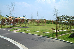 最近出来た施設で、たいへんきれいに整備されている。サイトのすぐ横に、写真の小山があって、草そり(無料→)が楽しめる。