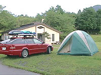 志高湖は、"湖"と言うより、池という感じのこじんまりとした雰囲気。志高湖キャンプ場のサイトは芝生がきれいに整備されていて、なかなかいい感じだ。キャンプサイトは湖岸沿いにずーっと広がっているので、かなり広いが、傾斜がある場所が多いのと、トイレが一箇所しかないので、便利で快適な場所は、意外に限られている。