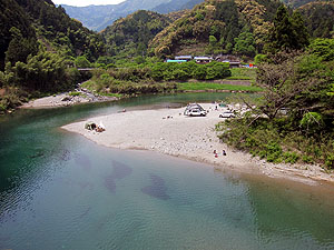 仁淀川町の池川にあるふれあい公園というキャンプ場の隣。歩いて行けます。こちらの方がロケーションがいい。川がきれいだし、直接河川敷なので。土居川と小郷川の合流点の河川敷。