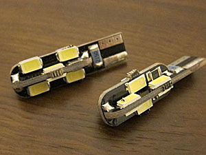 ライセンスランプのバルブをLEDに変更です。AliExpressで安物のT10ウェッジ型のLEDをゲット(ペアで$2.52-)して装着しましたが、やはりランプ異常警告が点灯しました。
