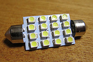 ゴルフの標準ラゲッジランプは、かなり暗い。位置も悪いので、ますます不便。LED化して明るくしるしかない!AliExpressで、T10-41mmの12SMDタイプのLEDを入手。たったの$1.35-だ。交換は至って簡単。