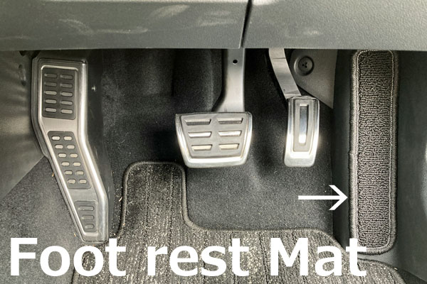 定番のペダルカバーを装着。これがないとかっこ悪い。AT用のフットレストが窮屈そうな感じがしたので、マニュアル用の細いタイプにしてみた。