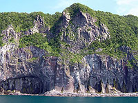 知床半島のオーバーハング地形 |